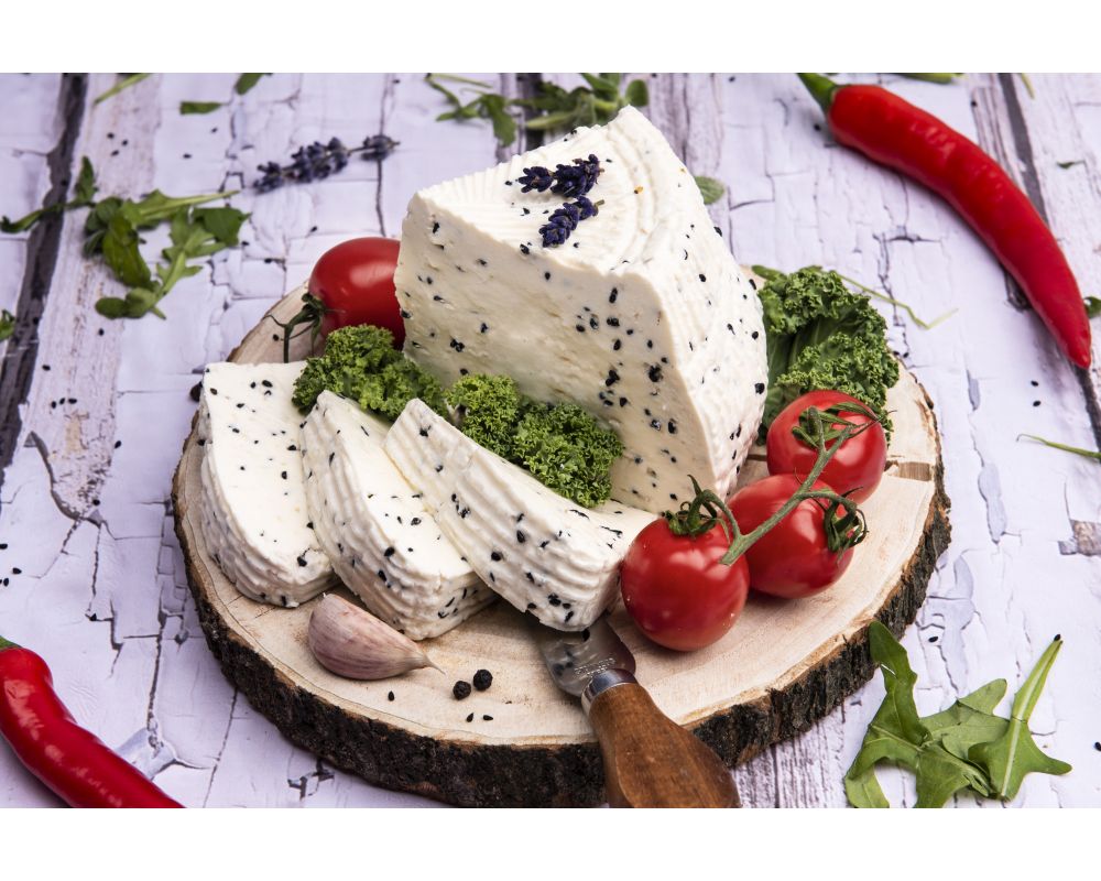 Ser kwasowo-podpuszczkowy z mleka krowiego niepasteryzowanego z dodoatkiem ziaren czarnuszki.